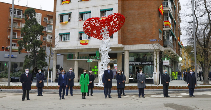 La obra, levantada en la plaza de los Sagrados Corazones del madrileño distrito de Chamartín, ha sido descubierta durante un acto en el que también han estado presentes la presidenta de la Comunidad de Madrid, el ministro de Sanidad, el alcalde de la capital y representantes de todas las instituciones públicas y privadas que han hecho posible esta loable iniciativa.